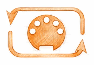 Orange arrow pointing diagonally upwards, indicating upgrade.